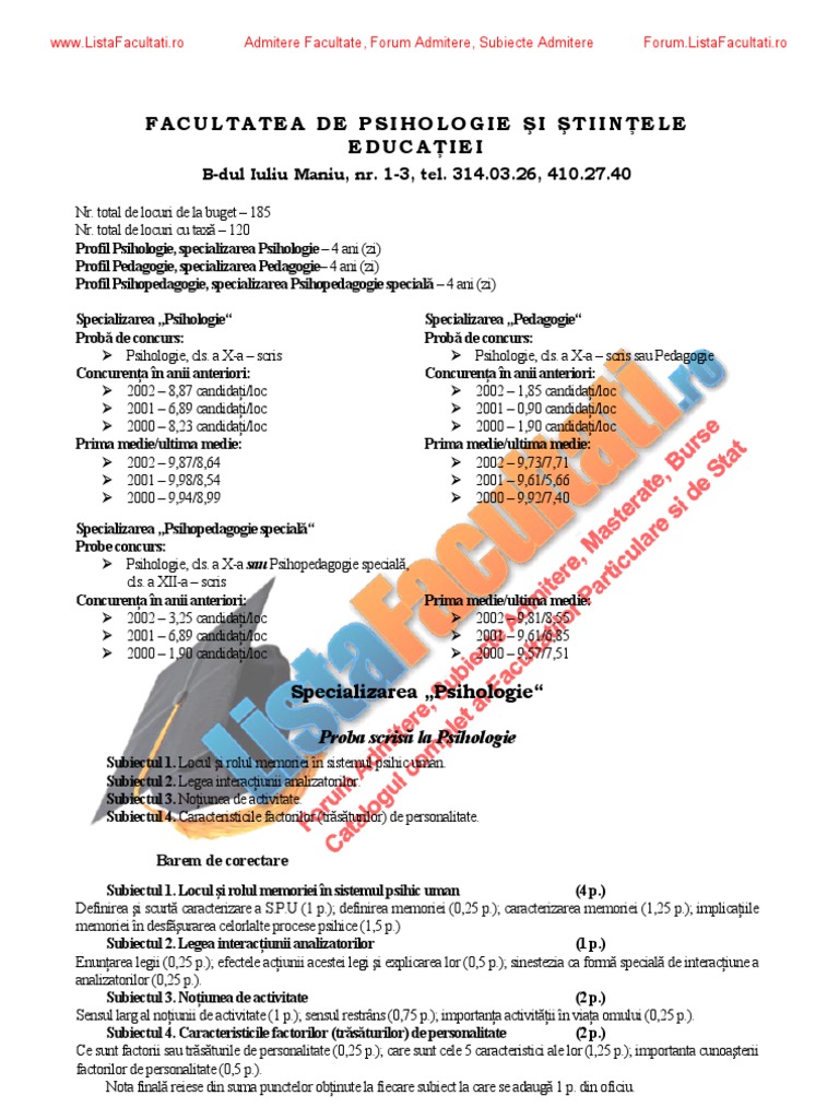 Ar trebui sa ma orientez spre alta facultate? Performanţele obţinute in activitatea didactică, de cercetare ştiinţifică, de conducere şi de organizare a procesului de invăţământ, au constituit. Cerere de înscriere (formularul completat online), în care candidaţii vor indica opţiunile şi.