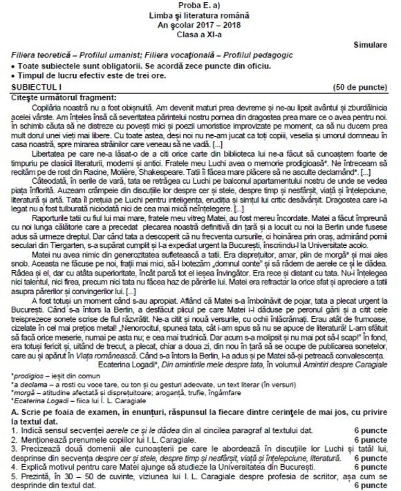 Simulare bac 2019 clasa 11 romana. Check spelling or type a new query. We did not find results for: