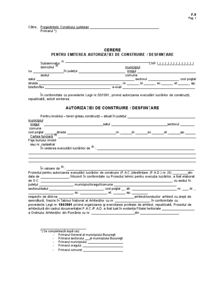 Model Autorizatie De Constructie / Formular F9 Cerere Tip Pentru Emiterea Autorizatiei De Construre Pdf
