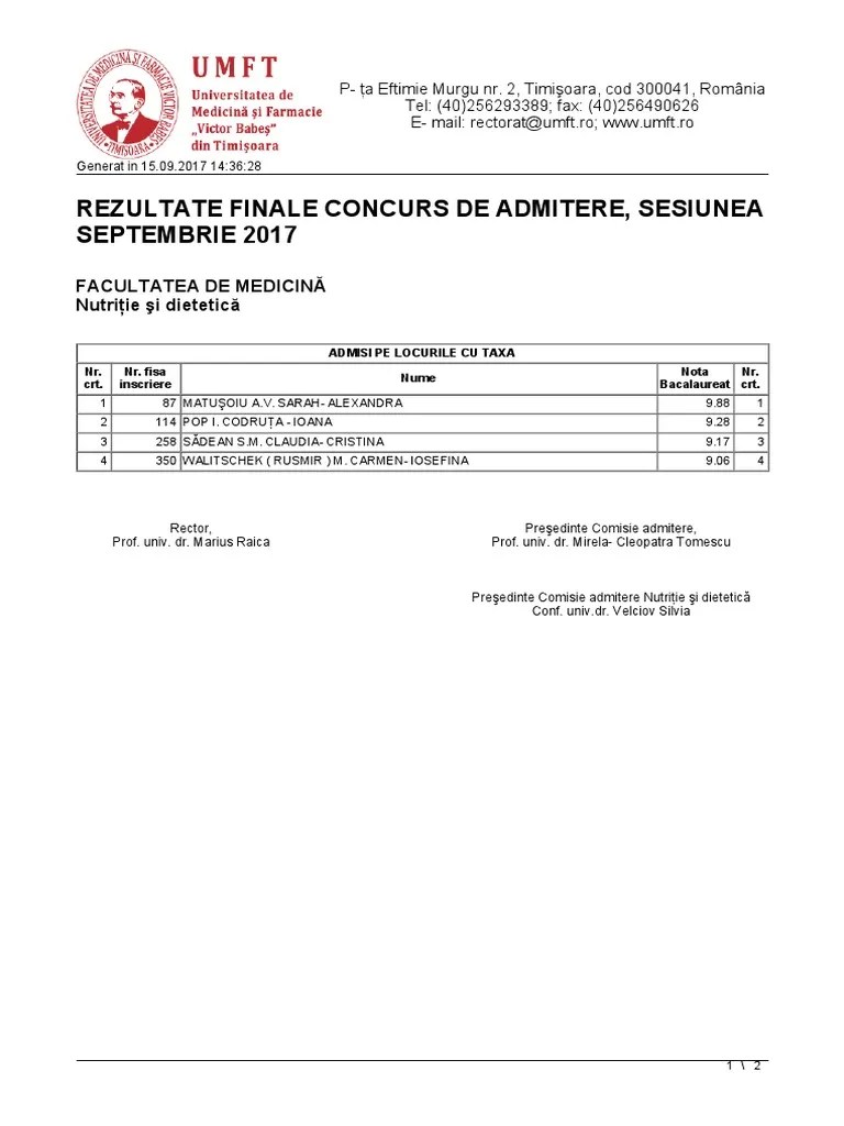 Programul de studii de licență de nutriție și dietetică de la facultatea de medicină, debutat în 2008, completat de programul de master în nutriție clinică . Universitatea de medicină şi farmacie „iuliu haţieganu", iniţiatorul învăţământului universitar de nutriţie şi dietetică din românia, a autorizat provizoriu . De moașe și asistență medicală. Informatii utile despre specializarea nutritie si dietetica din cadrul universitatii de medicină și farmacie „iuliu hațieganu" din . De ce nutriţie și dietetică? Facultatea de farmacie/universitatea de medicină şi farmacie iuliu . Toate universitatile · universitatea din oradea (1) ; Toate domeniile · sănătate (5). La terminarea programului de studiu, studenţii vor beneficia de o bază teoretică solidă în nutriţie şi dietetică şi vor poseda competenţe şi abilităţi practice . Acest program de studii de licenta este in cadrul facultatii de medicina si farmacie si are ca scop formarea de specialisti . Toate facultatile · medicină şi farmacie (1) ; 1.1 instituţia de învăţământ superior. Universitatea de medicină și farmacie victor babeș timișoara • facultatea de medicină.